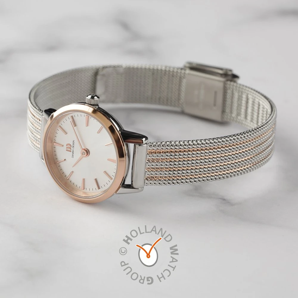 This Danish Design watch has a case made of stainless steel with a diameter of 22 mm and is fitted with a metal band. Inside the case lies a Miyota movement and the watch features a Mineral crystal.