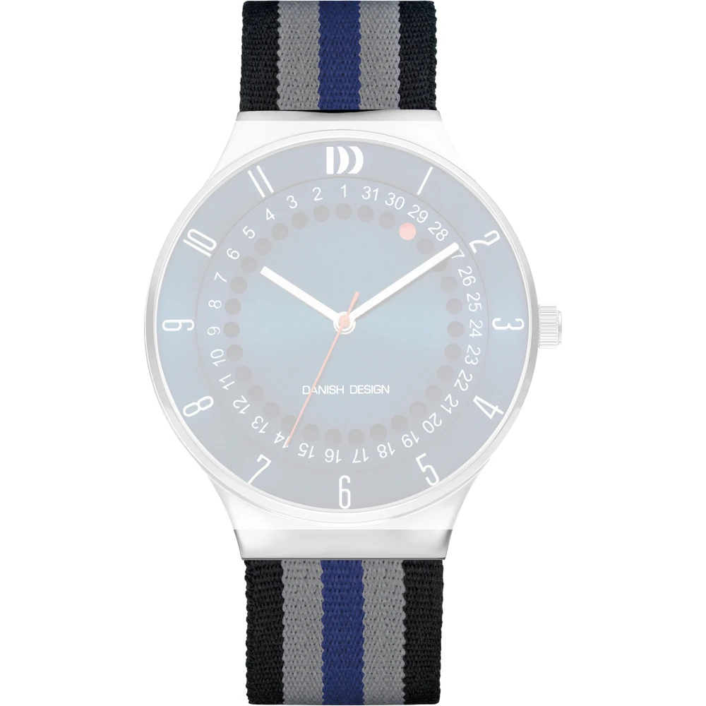 This Danish Design watch strap is made of textile and is attached to the watch by means of push pins. The band has a width of 20 mm and is closed by means of a buckle. The strap has a straight mount which means that this strap is suitable for all Danish Design watches with a straight mount.