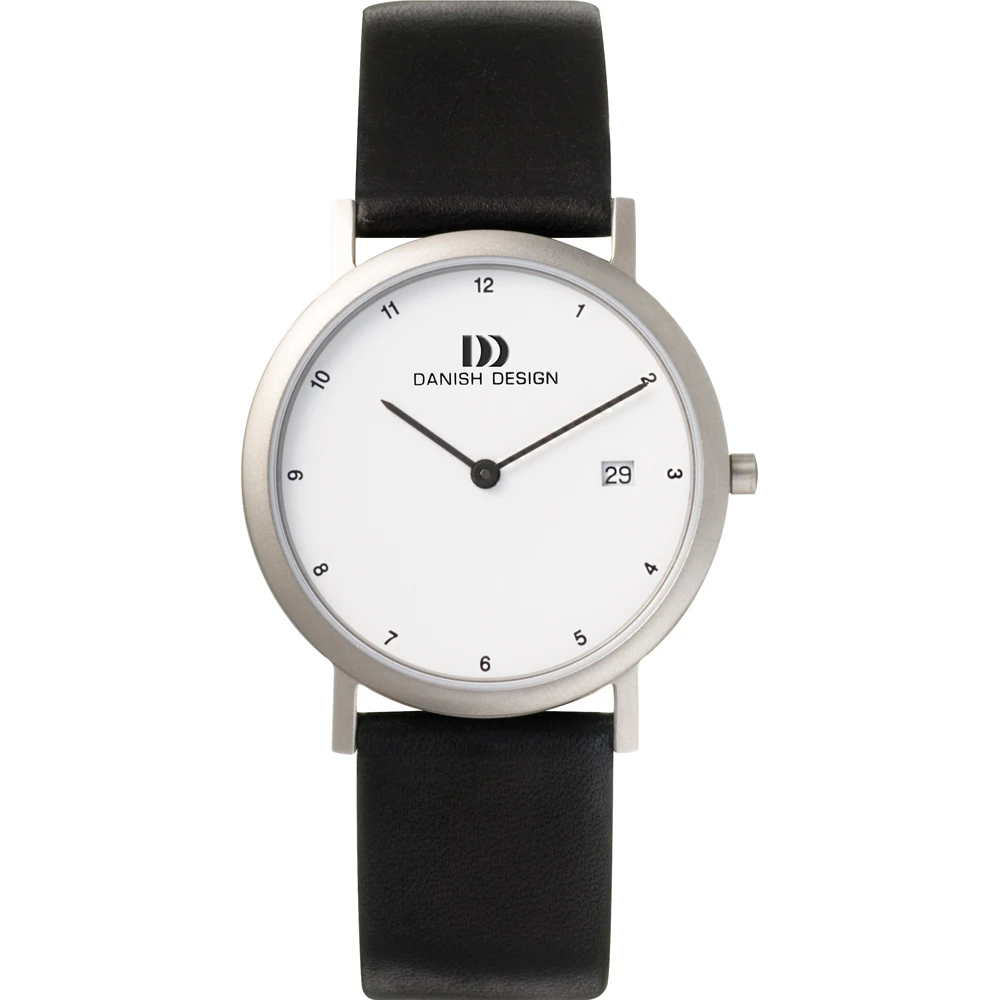 This Danish Design watch has a case made of titanium with a diameter of 34 mm and is fitted with a leather band. Inside the case lies a Miyota movement and the watch features a Mineral crystal.