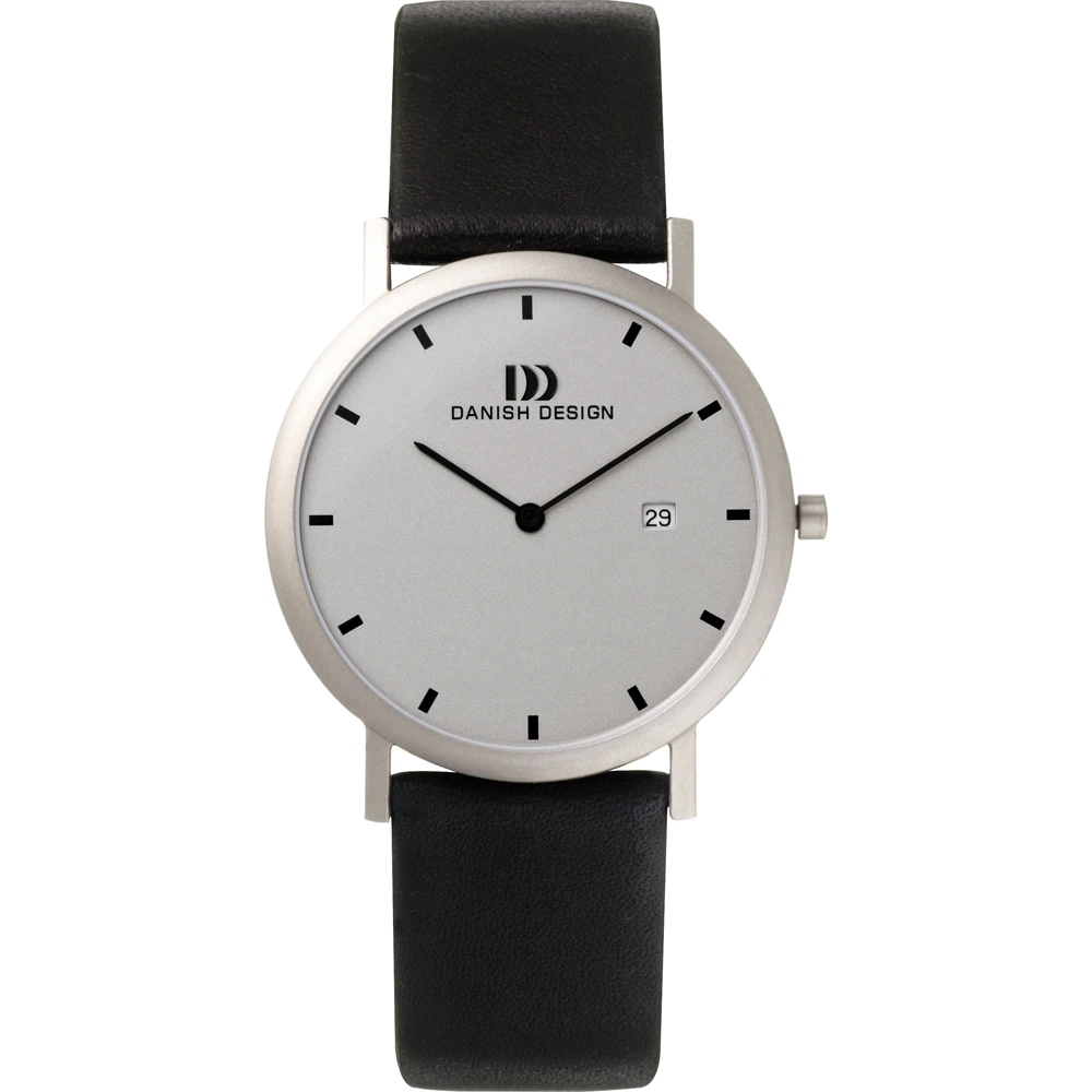 This Danish Design watch has a case made of titanium with a diameter of 34 mm and is fitted with a leather band. Inside the case lies a Miyota movement and the watch features a Mineral crystal.