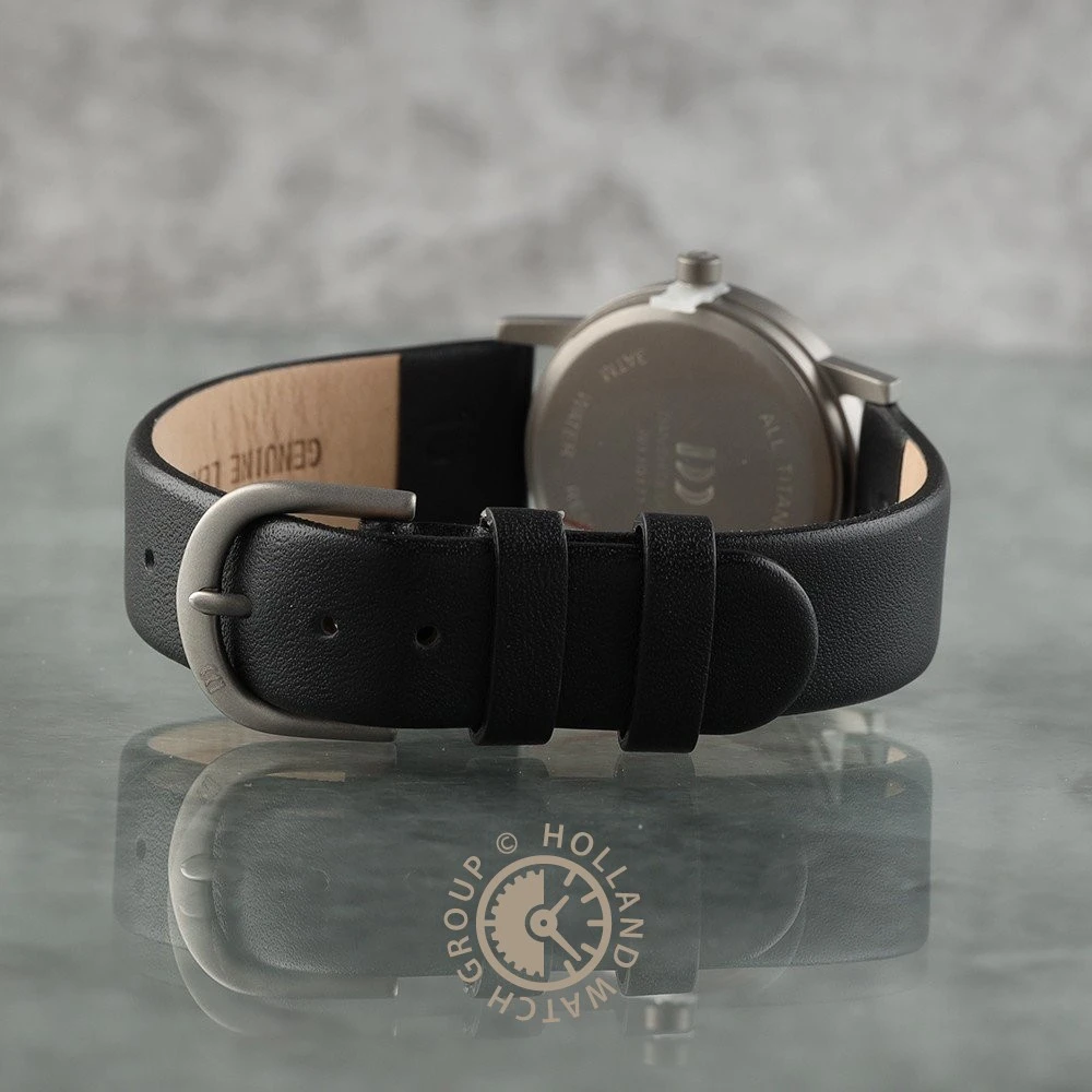 This Danish Design watch has a case made of titanium with a diameter of 28 mm and is fitted with a leather band. Inside the case lies a Ronda movement and the watch features a Sapphire crystal.