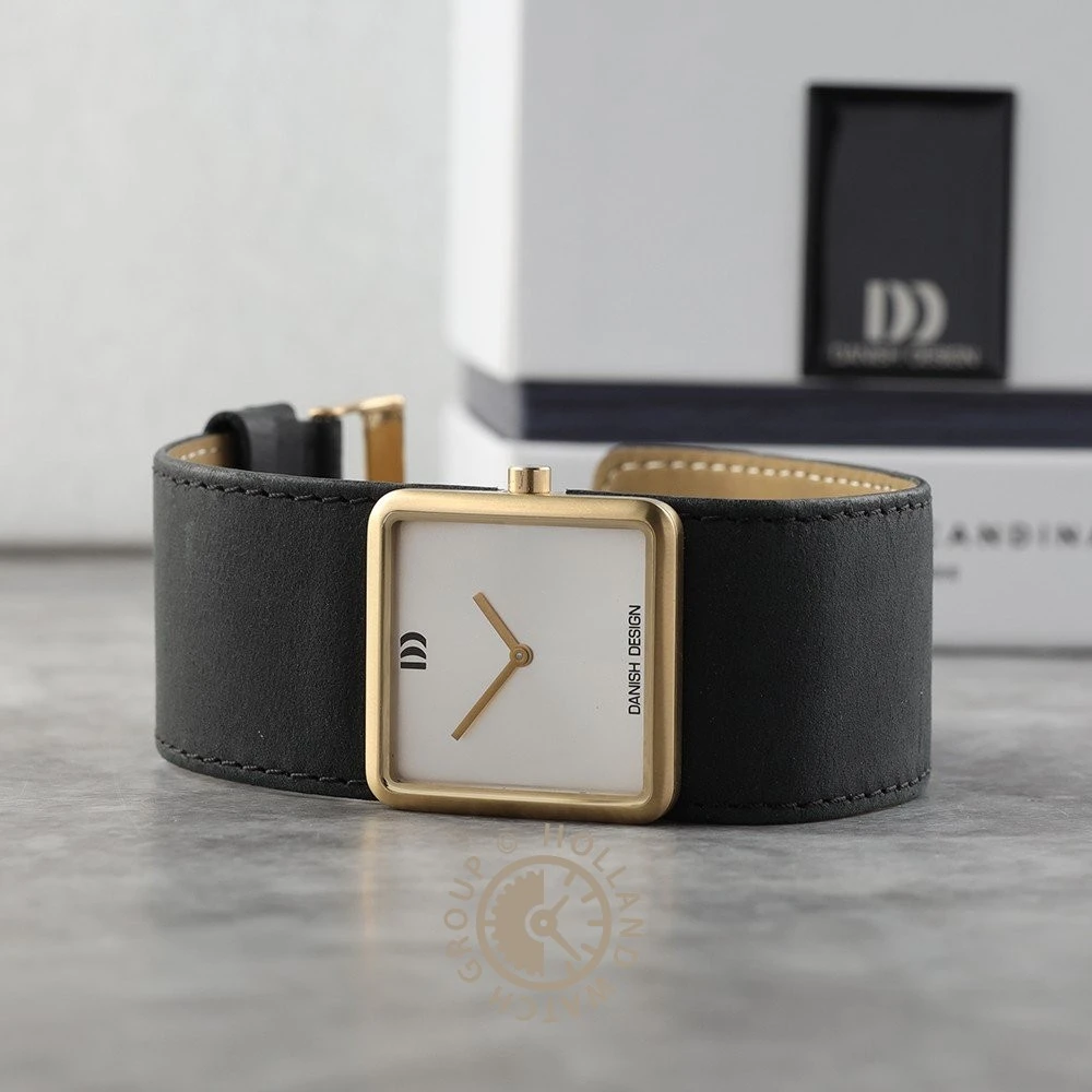 This Danish Design watch has a case made of stainless steel with a diameter of 30 mm and is fitted with a leather band.
