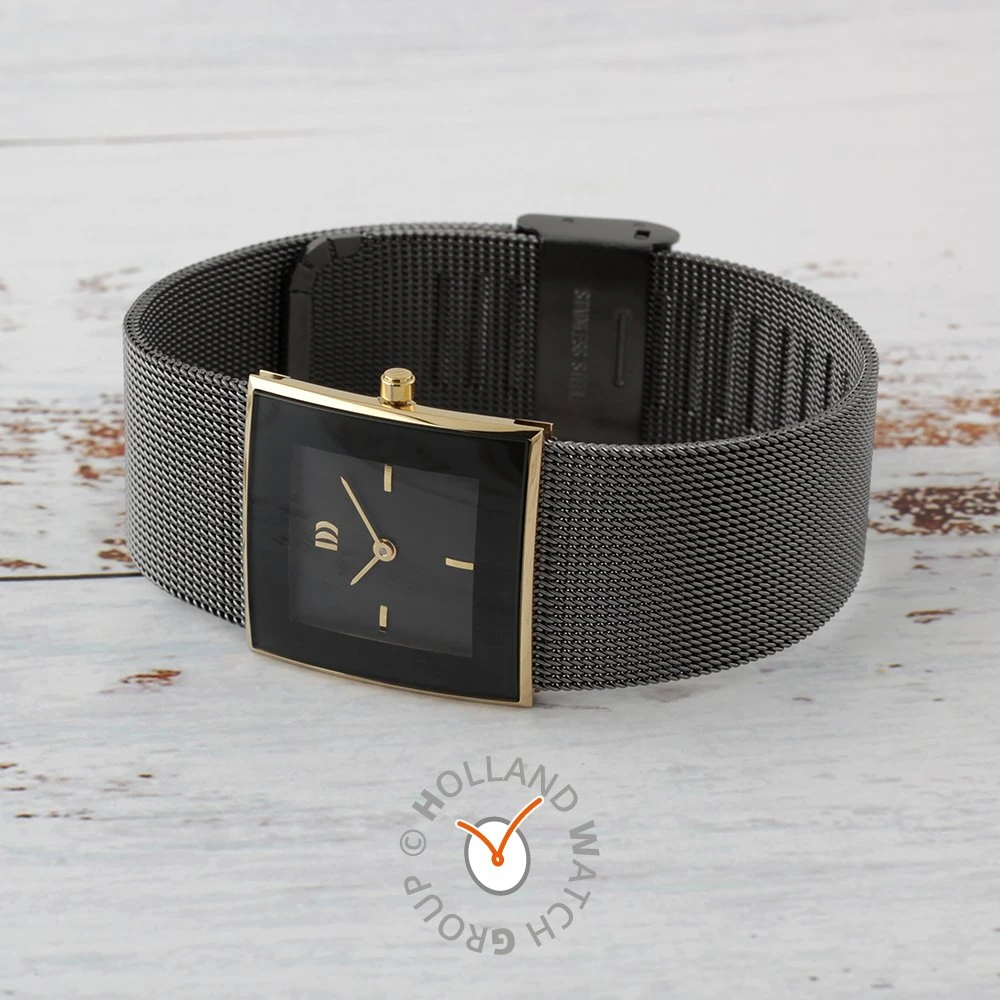 This Danish Design watch has a case made of stainless steel with a diameter of 27 mm and is fitted with a metal band. Inside the case lies a Ronda movement and the watch features a Mineral crystal.