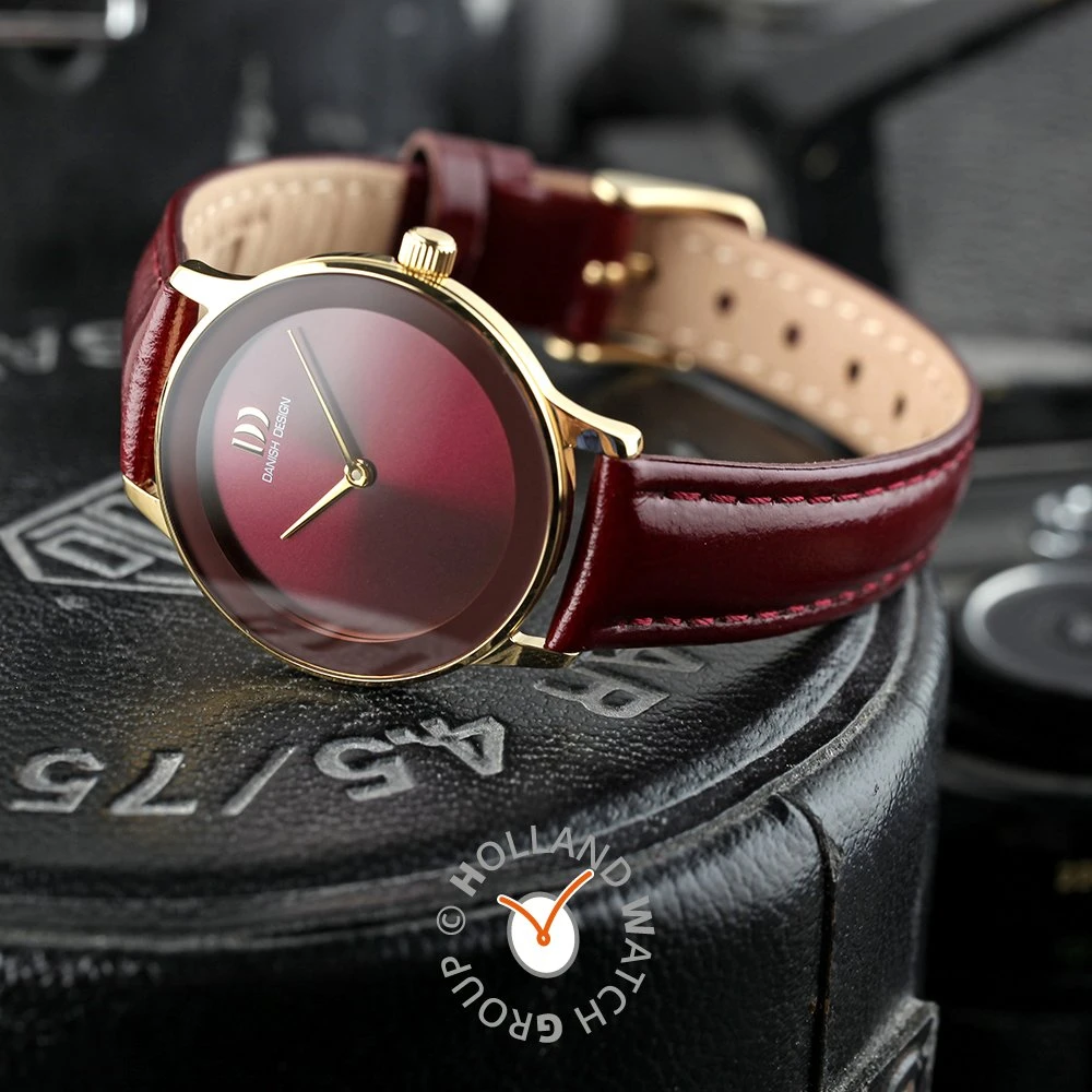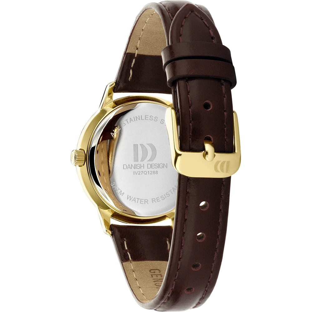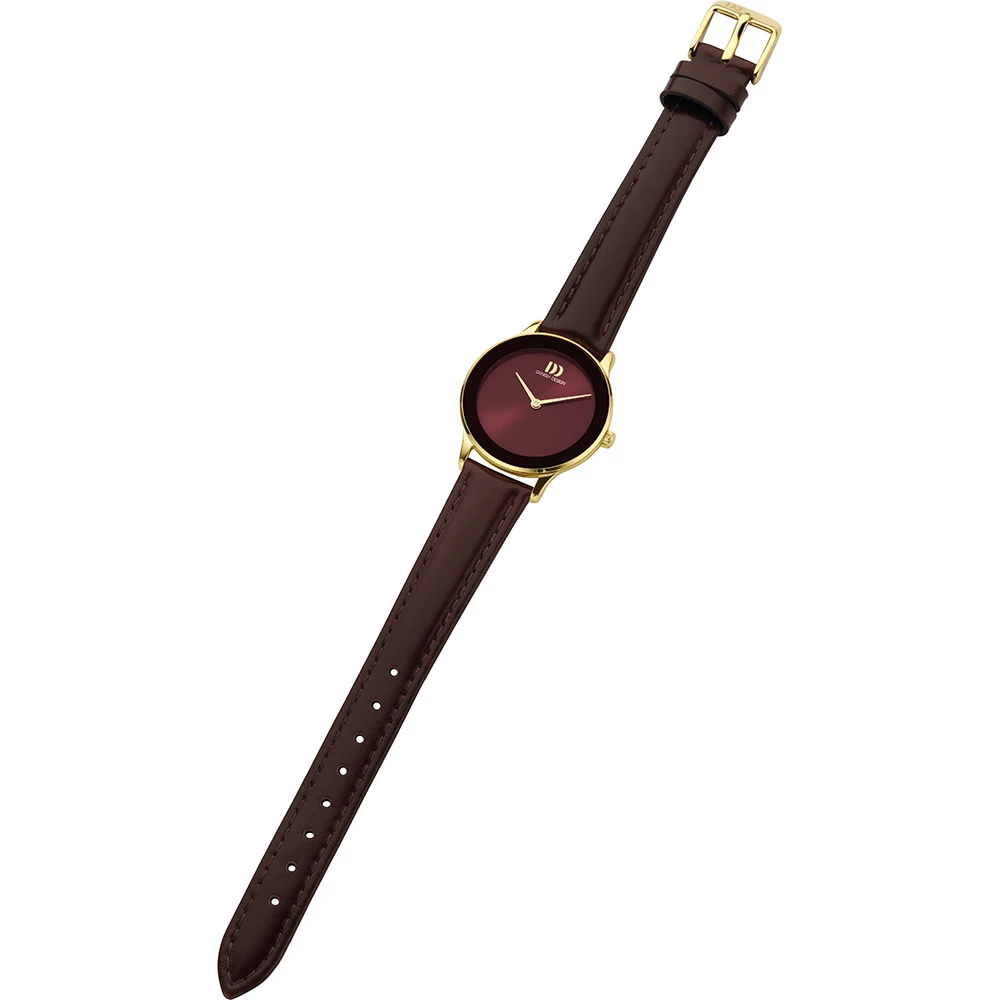 This Danish Design watch has a case made of stainless steel with a diameter of 29 mm and is fitted with a leather band. Inside the case lies a Miyota movement and the watch features a Mineral crystal.