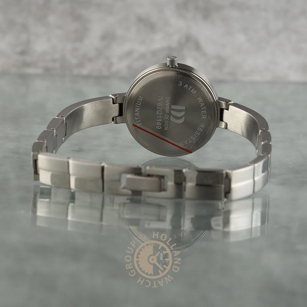 This Danish Design watch has a case made of titanium with a diameter of 28 mm and is fitted with a titanium band. Inside the case lies a Ronda movement and the watch features a Mineral crystal.