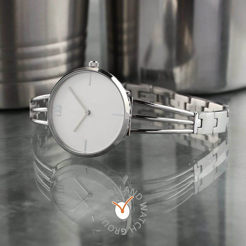This Danish Design watch has a case made of Steel silver with a diameter of 32 mm and is fitted with a Metal strap. Inside the case lies a Ronda movement and the watch features a Mineral crystal.