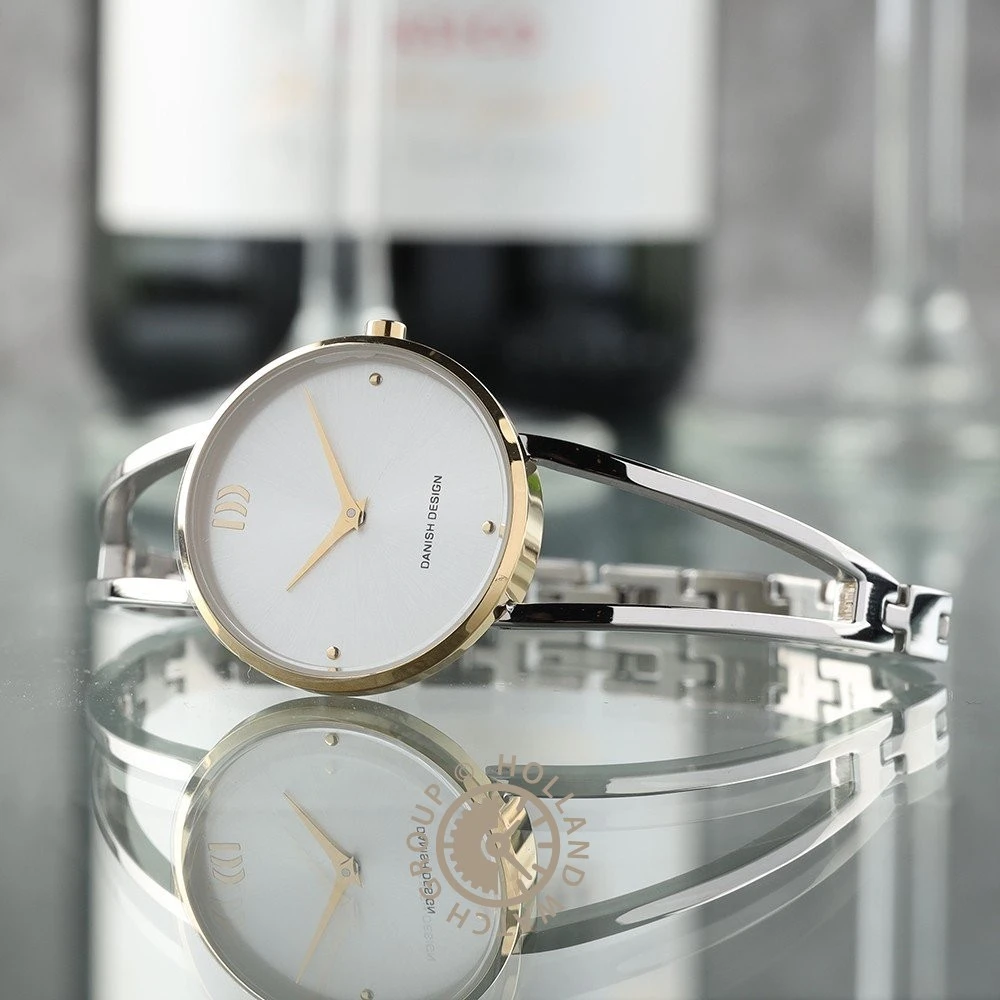 This Danish Design watch has a case made of stainless steel with a diameter of 27 mm and is fitted with a metal band. Inside the case lies a Miyota movement and the watch features a Mineral crystal.